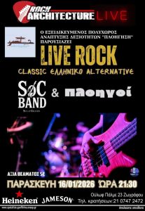 “Συναυλία των Πλοηγών με το rock συγκρότημα SoC Band στις 16/01/2026. Στην Architecture Rock Cafe – Live Stage.