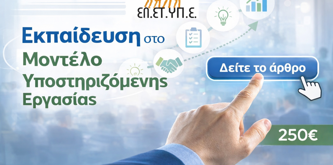 - Categories: Δραστηριότητες, Εργοδοτικά, Κατάρτιση στελεχών, Κατάρτιση φορέων, Νέα, Υποστηριζόμενη εργασία